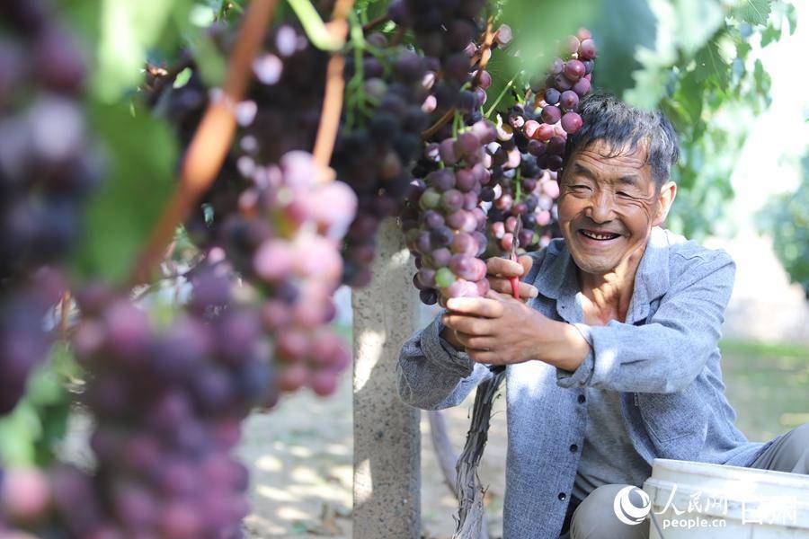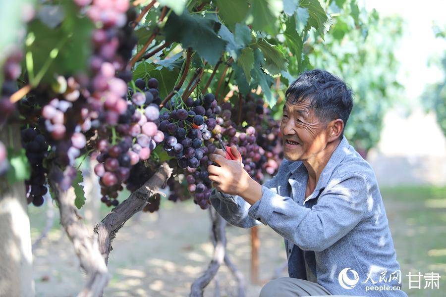 人民网兰州9月25日电 (记者米媛)金秋时节,甘肃省兰州城关区青白石街道青石湾村的葡萄园迎来丰收季。成片的巨峰葡萄缀满枝头,颗粒饱满、色泽紫黑,果农们忙着采摘分拣,田间地头一派喜人的丰收景象。